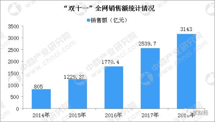 在首届双十一期间,参与的品牌只有27个,全部销售额亦不过5000余万元,在随后的几年时间里,无论是参与品牌还是销售额均如同坐了火箭一般,让人目瞪口呆。